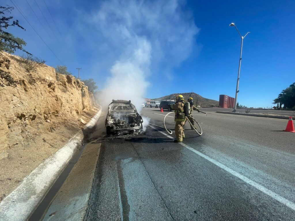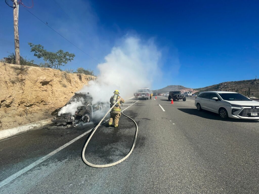 La mañana de este jueves, alrededor de las 11:25 horas, un vehículo particular se incendió sobre la carretera Transpeninsular, a la altura del desarrollo Westin Regina, en el tramo San José del Cabo – Cabo San Lucas.