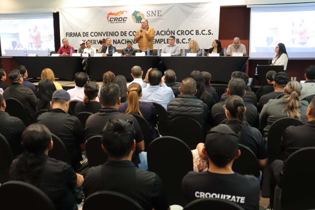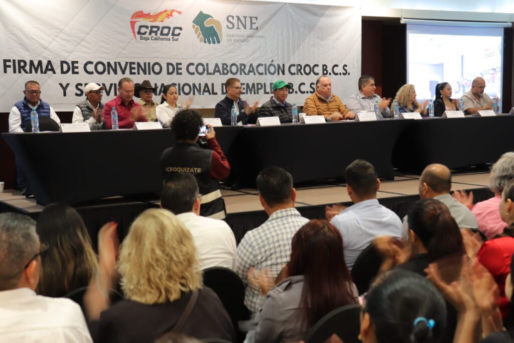 Con el objetivo de ampliar las oportunidades de empleo formal y mejorar la vinculación entre personas buscadoras de trabajo y empresas locales, el Servicio Nacional de Empleo de Baja California Sur (SNEBCS) y la Confederación Revolucionaria de Obreros y Campesinos (CROC) firmaron un convenio de colaboración que permitirá fortalecer acciones conjuntas de colocación laboral y capacitación.